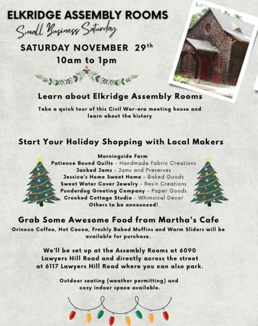 Orinoco Coffee, Hot Cocoa, Freshly Baked Muffins and Warm Sliders will be available for purchase.